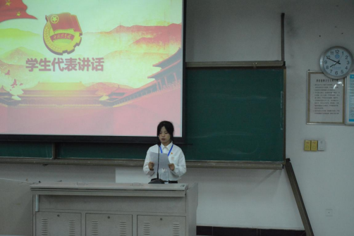 新发展团员代表雷淑上台发表入团感想,她表示,共青团员作为党的助手和后备军,是党联系青年的桥梁和纽带。作为一名青年在校老员工,要把握学习时光,努力锻造自己,踔厉奋发,立志成为一个有理想、敢担当、能吃苦、肯奋斗的新时代好青年。