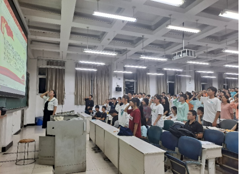 10月14日,公司于第 教学楼2—2教室举行了“ 欢度国庆节,喜迎二十大 ”2022秋季开学第一堂团课活动,公司 员工科科长巩元勇,2 022 级辅导员赵春霖, 团委员工会主席、干部,社管委干部以及全体2022级新生参加活动。分团委书记 张子萱担任主讲人。