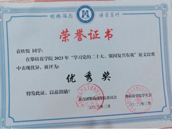 在学习党的二十大征文活动中,邹丽娜,袁欣悦等同学分别获得了一等奖,二等奖。在2023年1月,班级成员积极参加“返家乡”等社会实践活动,积极参与岗位实习,下乡支教等实践活动。袁欣悦在“青春志愿,爱在旅途”春运志愿服务活动团队中表现优秀,获得表扬;班级成员积极组织活参加志愿服务活动,在有限的时间做无限的事,帮助群众,服务社会。