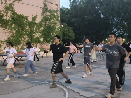 何妮:初学太极,不免会因为它缓慢的动作而觉得有些枯燥与乏味。经过一两周的模仿比划,渐渐地入门了,也初步体会到了太极拳的“神”、“意”。太极比较强调放松,不仅仅是身体上的放松,也要做到心无旁骛,静心用意。太极的动作都有一定的曲线,不浮不僵,身体保持自然,轻柔匀缓。全身上下作为一个整体,身体每个部分都要配合做到有弧度,街接和顺。练习时,仿佛我们做每个动作时都有一个球在顺着我们的动作运行,能够自然感受到身体逐渐放松了下来。