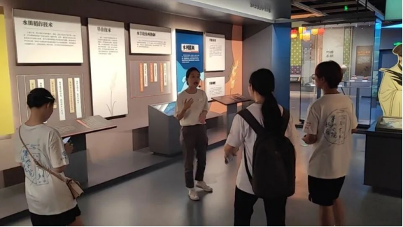 讲解员为实践团成员解说了古蜀地区水稻种植技术的改良——两稻杂交,讲解中提到,这一技术极大程度上解决了当时百姓的温饱问题,自此,商业才逐渐在民间发展起来。