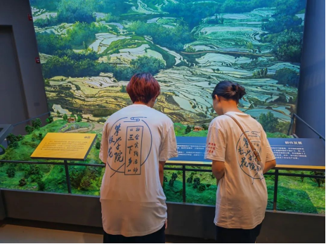 参观过程中,队员们还积极讨论了巴蜀之地耕田的排列类型,并达成了一种共识——梯田不仅可以最大程度地利用凹凸不平的耕地,还能够美化耕种环境吸引游客助力当地旅游业的发展,为乡村振兴做出贡献。