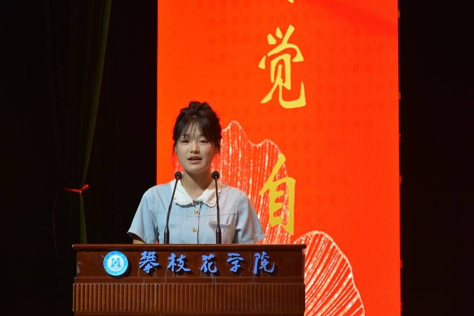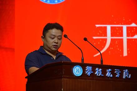 田华奕代表全体新生表示要拒绝“躺平”、在奋斗中追逐梦想、开启大学新篇章。