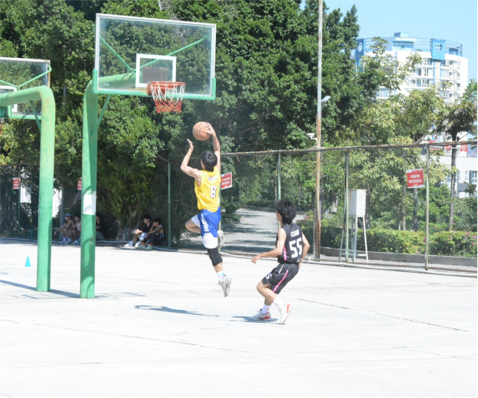 正值中午,球场烈日炎炎,但观众们仍旧热情高涨地在场边为球员们加油、助威。场上球员们认真地做着热身运动,准备拿出最好的状态来迎接这次比赛。随着哨音响起,比赛开始,球员们迅速进入状态,你追我赶全神贯注地应对每一颗球,球员们相互配合、鼓励、跳投、运球……上演了一幕幕精彩的瞬间,赢得观众们的阵阵喝彩。随着比赛的进行,球员们的体力虽然都有所下降,但仍饱含激情,为我们带来了一场精彩的比赛。