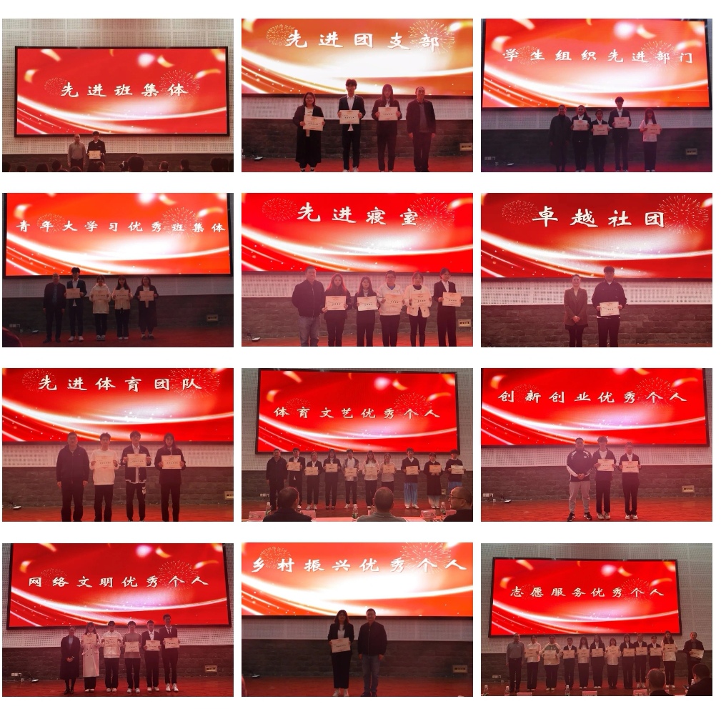 公司领导班子、各科室负责人及辅导员分别为2022—2023学年先进班集体、先进团支部、青年大学习优秀班集体、员工组织先进部门、先进寝室、卓越社团和先进体育团队等21个集体依次颁奖。