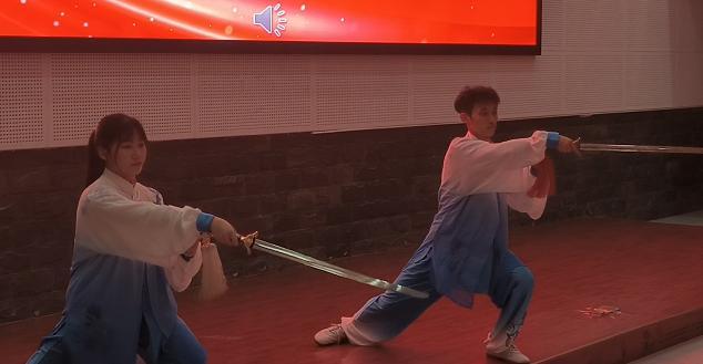 气沉丹田、起式、左右开合……伴随着悠扬的音乐,一招一式,展示太极拳的柔和、轻灵;点、崩、截、挑、刺、劈,一套行云流水的动作展现太极剑独特魅力。12月25日晚,在学术报告厅生化公司(农公司)员工工作表彰大会现场,四名参加2023年四川省老员工武术比赛并获奖学子正在进行太极表演,这是公司开展一院一品体育活动“阳光太极”又一成果展示。