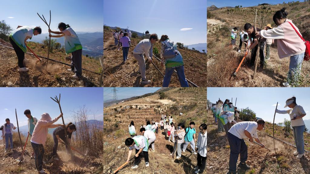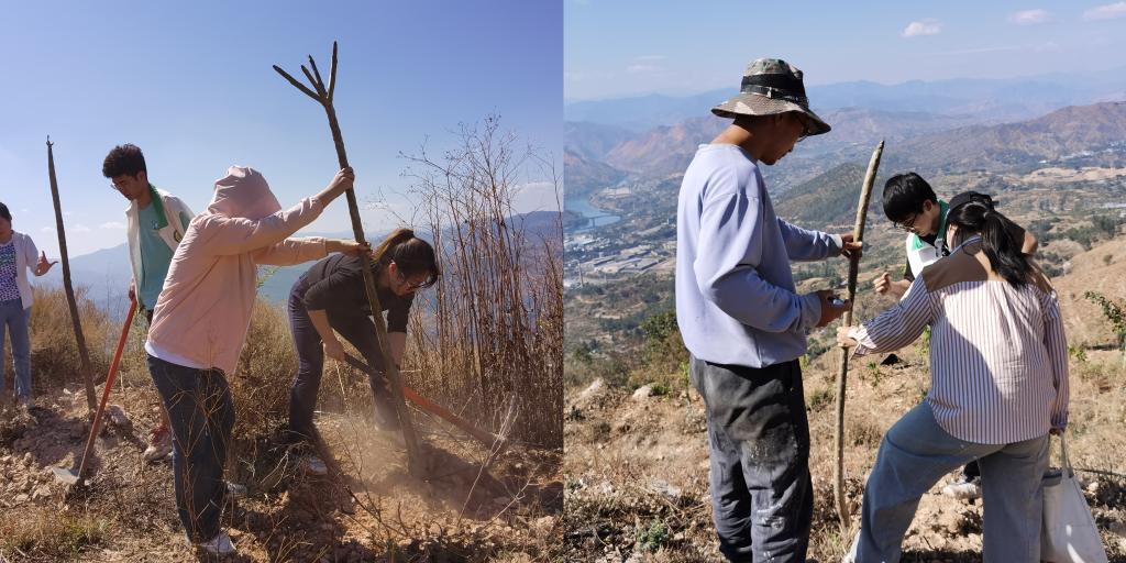 西区格里坪镇陈家村,因干热河谷气候的影响,山上较干燥荒凉,是急需生态修复的植树造林点。植树前,赵丽华老师和地区负责人仔细讲解“鸡蛋花”属性以及种植技巧,并开展种植示范。随后,志愿者们分工协作,配合默契、挥锹铲土,扶正树苗、平整踩实,历时两小时110颗鸡蛋花挺立在陈家村山腰间,展现出勃勃生机。
