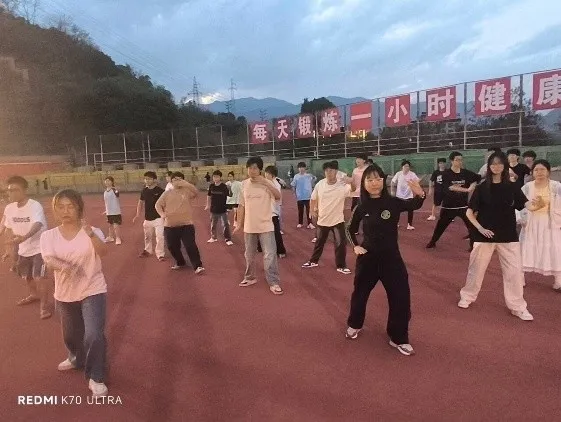 朱军:训练中,全班同学拧成一股绳的画面令人动容。有人动作卡顿,周围便响起鼓励的掌声;有人掌握技巧,立刻主动分享经验。我们在晨光熹微的操场反复打磨动作,在夕阳余晖中合练队形,从最初的参差不齐到最终表演时整齐划一的行云流水,每个进步都凝结着集体的智慧与坚持。太极拳“以柔克刚”的哲学,悄然融入我们的训练日常——面对困难不硬扛,相互借力共突破。