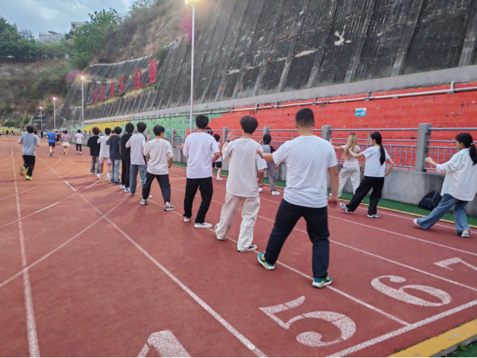 傍晚的校园操场,班级同学们身着轻便服装,开始太极练习。随着舒缓的音乐响起,大家缓缓起势,弓步沉稳,推手轻柔,动作如行云流水。一招一式间,刚柔并济,默契十足,将太极的神韵展现得淋漓尽致,成为校园里一道独特的风景线。