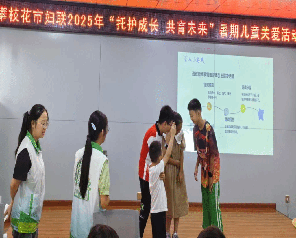 7月20日下午,攀枝花市东区妇女儿童服务中心内内笑声阵阵,一场以“快乐成长,拥抱阳光”为主题的小员工心理班会在此举行。活动通过趣味游戏、情感分享和防霸凌教育,引导孩子们学会表达情感、关注同伴,为暑期生活注入温暖与正能量。