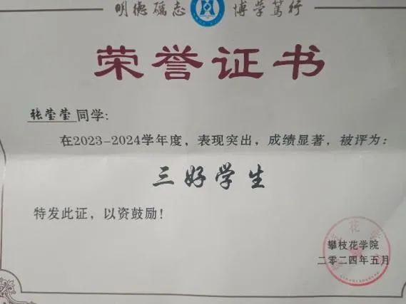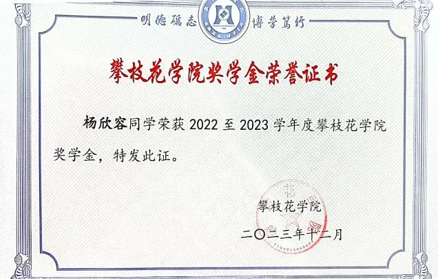 杨欣容,共青团员,生物工程本科班。上岸昆明理工大学。曾获国家励志奖学金,yl23455永利集团奖学金,优秀共青团员,优秀干事,校级优秀毕业生,2024年“建行杯”四川省国际老员工创新大赛省级银奖,已过英语过四级,计算机二级。