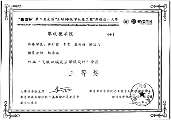 “赢创杯”互联网+化学反应过程课模设计大赛