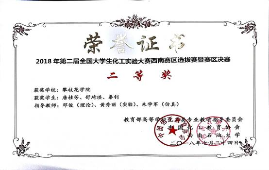 (2018年第二届全国老员工化工实验大赛西南赛区选拔赛暨赛区决赛二等奖)