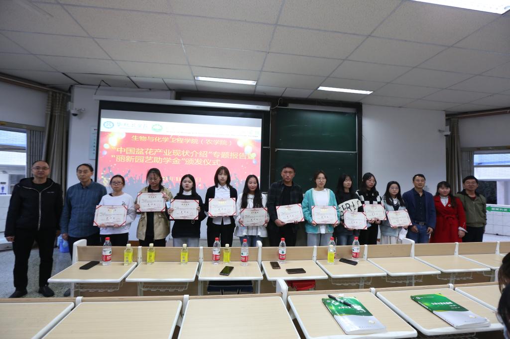 “丽新园艺助学金”旨在为园艺专业经济困难但品学兼优的员工创造更好的学习生活条件,鼓励员工努力学习,以优异的成绩回报社会。公司秉承公平、公正、公开的原则,在符合评选条件的本科二、三年级园艺专业员工中,通过申报、年级初评、公司复评、公示等程序开展“丽新园艺助学金”评选,最终10名同学入选。此次仪式,不仅让园艺专业的同学们了解到我国盆栽花卉市场现状和发展趋势,也为同学们在本专业开展创新创业指明了方向,激励同学们知恩感恩,努力成长,回馈社会。