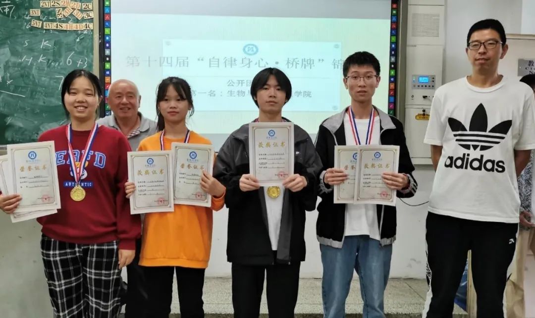 2022年5月14至15日,公司体育运动委员会于一教1-502教室举行了第十四届“自律身心·桥牌”锦标赛,公司荣获团体一等奖,其中20级化学工程与工艺(2)班的姚洪博和陈一桓同学荣获第二名,陈雨和岳媛媛同学荣获第三名。