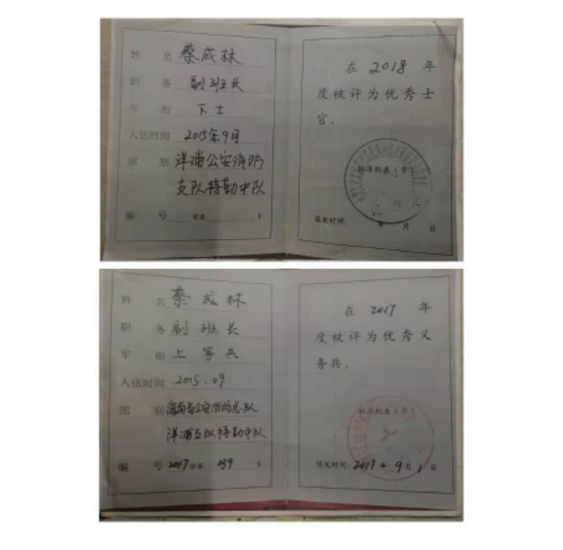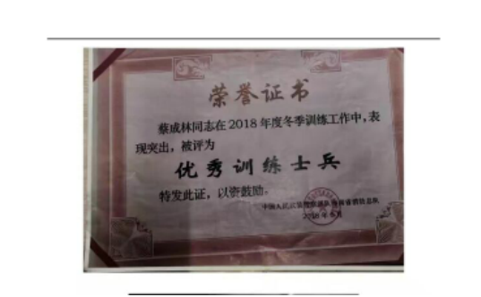 2017年,他荣获“优秀义务兵”荣誉称号;