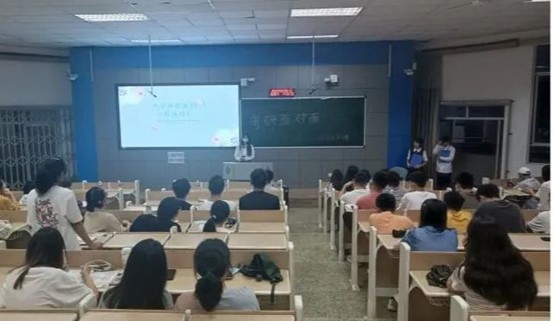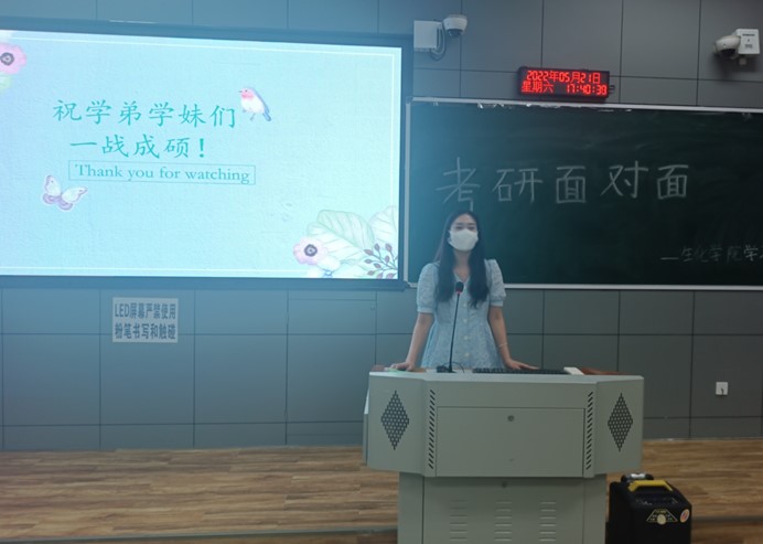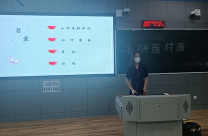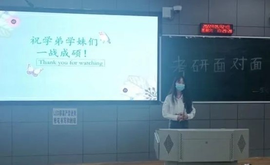 在交流会中学长和学姐们都积极地分享自己的经验,热情地解答同学们的提问。当被问到合适的考研准备时间和目标时,他们表示要早点定下自己的目标早做打算,才能让自己有更多的时间和更大的把握。