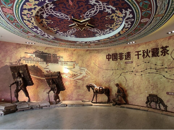 茶马古道,因藏茶而生。茶马古道主要有川青道、川藏道、滇藏道等走向。川藏茶马古道起源最早,历史最久,易马最多,运输量最大,道路最遥远复杂。逶迤五千里的通天茶路,穿越崇山峻岭、沟壑险滩、锅庄茶塞,见证了背夫、马帮熙来攘往,把健康文明带上雪域高原。“康定锅庄”是茶马古道上独一无二的文化现象,是收购土产、设有客栈、货栈和商业中介为一体的特殊商业机构。茶马互市,因藏茶而兴。“茶马互市”是我国历史上西南、西北地区汉民族和边疆少数民族之间以茶马交易为中心的一种贸易制度,用茶换取马匹,使中原地区的不育马种或马种欠佳的地区得到众多种马资源,为优良马种创造了条件,为中华大地繁荣优质马群做出了历史性贡献。茶马古道的存在,推动汉藏地区以茶易物、巩固民族团结、维护边疆稳定。千秋藏茶,汉藏亲情,是中华民族大融合的贸易纽带。