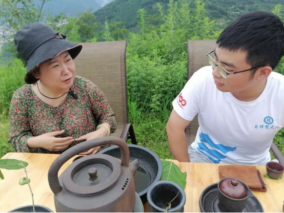“褐中带黄、像琥珀一样是黑茶的茶汤,明亮的黄色是红茶。“在讲解中,实践队员体验品茶,通过茶汤的颜色、茶底的形态来分辨茶叶的好坏,了解各茶类的功效,学习茶桌礼仪,品茶的过程无不体现出中国文化的雅致。随着一抿香茗入口,一天的疲劳得以消散。实践队体悟中华茶文化的博大精深、茶马古道的深厚渊源。