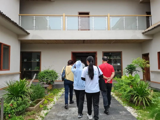出史馆后,实践队又去到了村里的民宿中参观。来到民宿,首先就能感觉到民宿周围的幽静,进入到民宿里面,沙发、电视等等设施应有尽有,装饰的艺术画、工艺品也是精美。民宿给人的感觉就像是家的感觉是一样的。工作人员向我们介绍到村里民宿大约有120多户人家,最好的民宿一个月的租金大约在3万元左右。由此民宿的租金也为村民带来了可观的收入,不过最近因疫情影响有所下降。