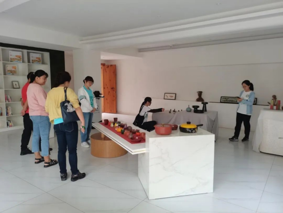 在服务中心工作人员的带领下,实践队去到了昔格达村的历史文化馆进行参观,据介绍昔格达村历史悠久,早在600多年前已有先人在赤龙潭农耕。一代又一代勤劳朴实的昔格达村民,打造出了田园风光与村落文化交相辉映的美丽村落。在馆中,有很多具有历史韵味的农耕工具和独具特色的现代工艺的陶瓷制品。目前,昔格达村正在立足本地优势资源条件,研究开发钛陶文创产品,助力培育乡村文旅产业。建成后将开设沉浸式陶艺工作室、陶艺展厅、陶艺民宿,为游客提供传统器具文化学习、陶艺手工制作体验及培训等服务。“还将开发钛陶伴手礼,带动村民增收致富。”在参观过程中,工作人员还为我们讲解了昔格达村的历史和神话故事等等,大家深深地感受到了昔格达村的历史文化。