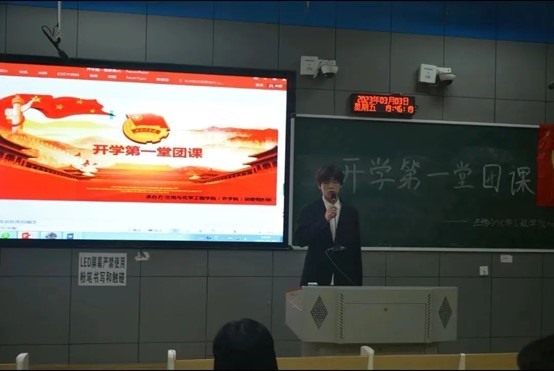 2023年3月4日,公司于第一教学楼1-2教室举行了2023年开学第一堂团课,公司分团委书记张子萱,2022级辅导员赵春霖以及2022级团员代表参加团课。