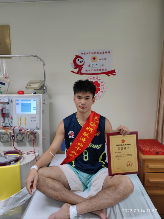 2022年9月,正在公司做大创项目的韦庆宁收到通知后,立即表达自己救助他人的意愿,并在攀枝花市红十字会的安全组织下勇敢前往疫情形势严峻的成都。经过核酸检测、注射动员剂等一系列流程,9月14日,他在四川省人民医院血液科成功完成造血干细胞采集。