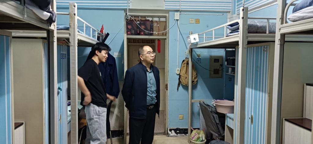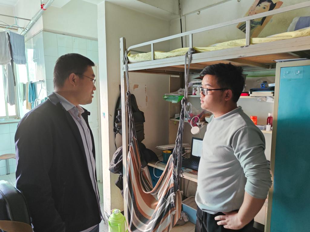 2月25日,随着同学们陆续返校,生化公司党委书记刘东康带领着员工科长、分团委书记和辅导员等员工工作战线的老师们深入员工寝室进行走访慰问。