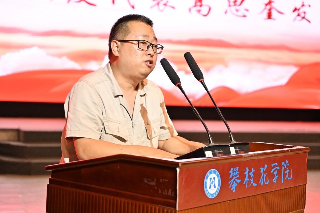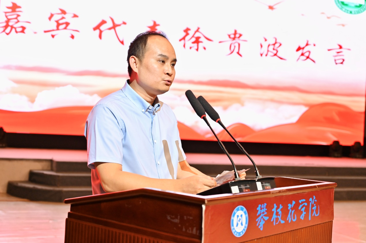 公司校企合作企业——四川东立科技股份有限公司综合管理部副经理徐贵波发言。他以实习为基础,告诫新同学如何珍惜大学时间和资源,鼓励大胆尝试,不要害怕失败,以“修学储能,经世致用”与新生共勉。