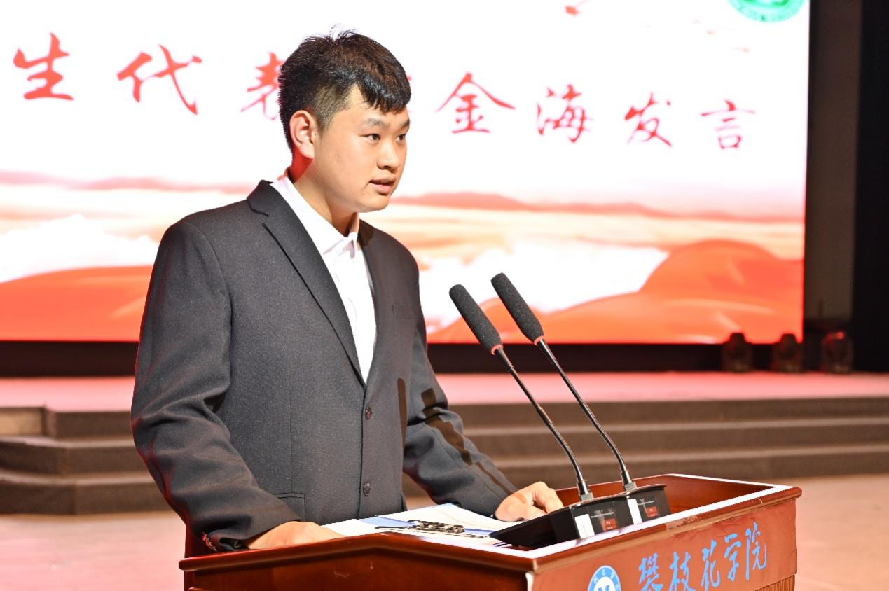 新生代表张梦萌表示,大学是人生旅途的重要阶段,我们要不忘初心,牢记使命,砥砺品格,志存高远,知行并重,勇于实践,创造自己的辉煌明天。