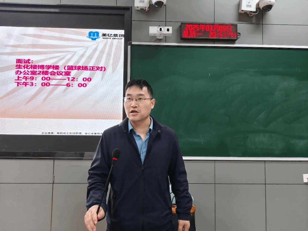 唐林做就业动员,他对美亿集团负责人的到来表示热烈的欢迎,并鼓励同学们珍惜此次难得的就业机会,勇敢迈出职业生涯的第一步。