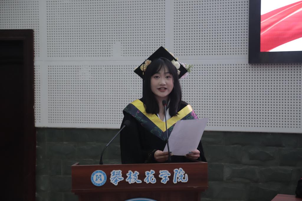 毕业生代表黄芮同学上台发言,她以真挚的语言分享了在公司的求学点滴,表达了对母校、师长和同窗的感激之情,并号召全体毕业生牢记初心,勇敢追梦。