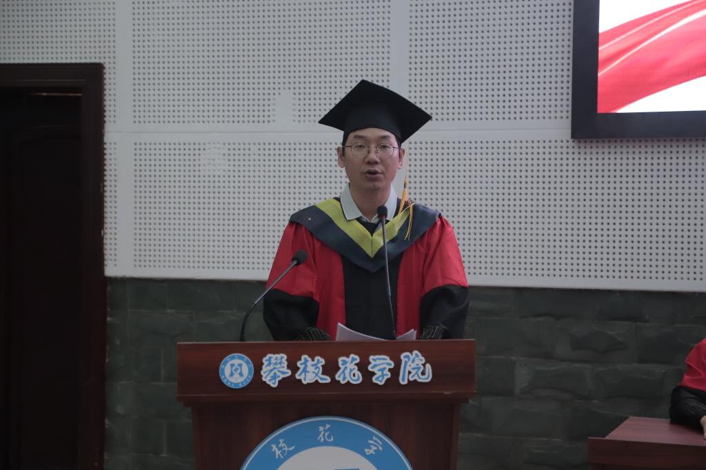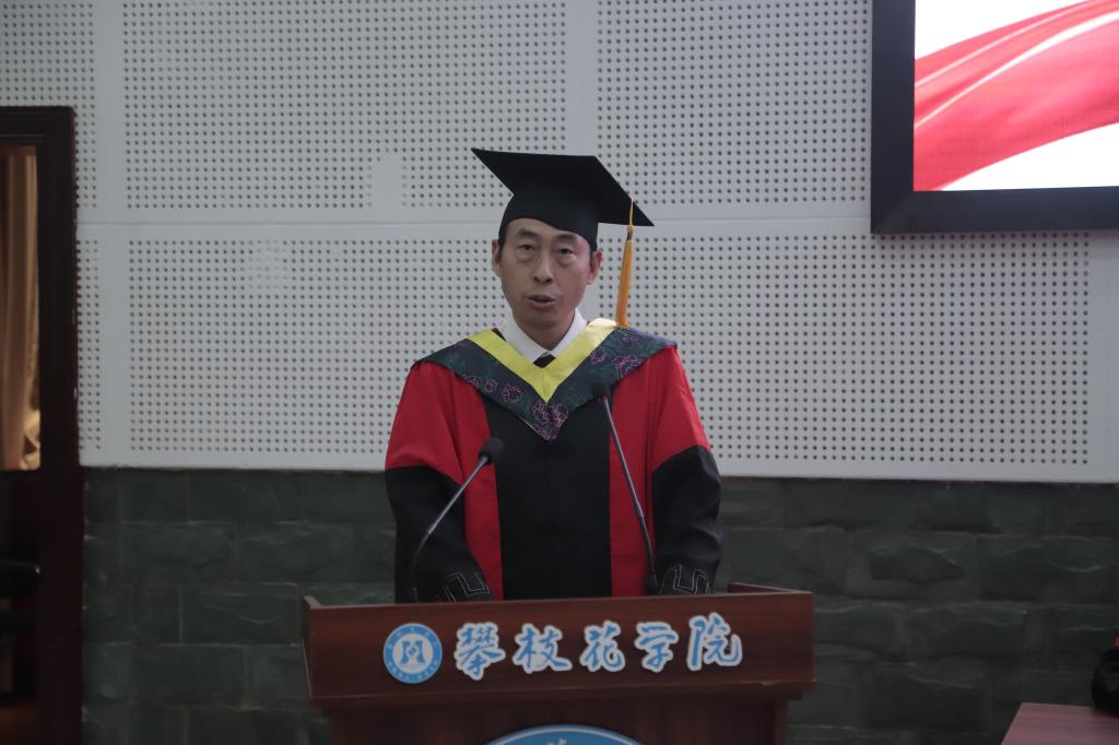 公司经理朱学军教授致辞,他从国家飞速发展、公司办学层次提升,和员工在校成长收获回顾大学四年点滴,寄语员工要修身立德,学会做人,勇于担当,在工作生活实践中不断培养高洁的操行的淳朴的情感;要心怀梦想,学会坚持,选择幸福,在青春年少时努力奋斗,在坚持中深耕;要饮水思源,学会感恩,传递温暖,在感恩父母、老师、同窗中进步成长;要脚踏实地,知行合一,逐梦未来,面临筑梦路上的挫折和困难要砥砺前行。