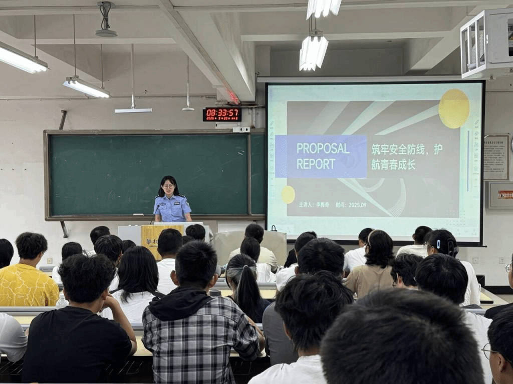 2025年9月20日上午,公司面向2025级新生组织开展防电信网络诈骗专题宣讲。本次活动特邀东华街道派出所民警李梅奇担任主讲,以“筑牢安全防线,护航青春成长”为主题,为新生带来了一堂实用而生动的“反诈必修课”。