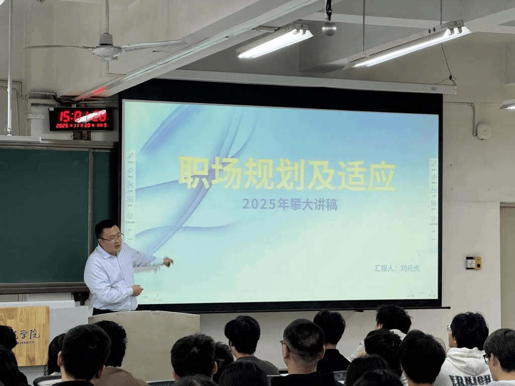 针对同学们普遍关心的职场过渡问题,刘元虎员工没有回避现实挑战,他坦诚地分析了初入职场可能面临的压力适应、人际环境、发展迷茫与心理调适等实际问题,并结合自身管理经验,给出了务实中肯的应对策略与方法,帮助同学们对未来职业旅程建立了更清晰的认知和更充分的心理准备。