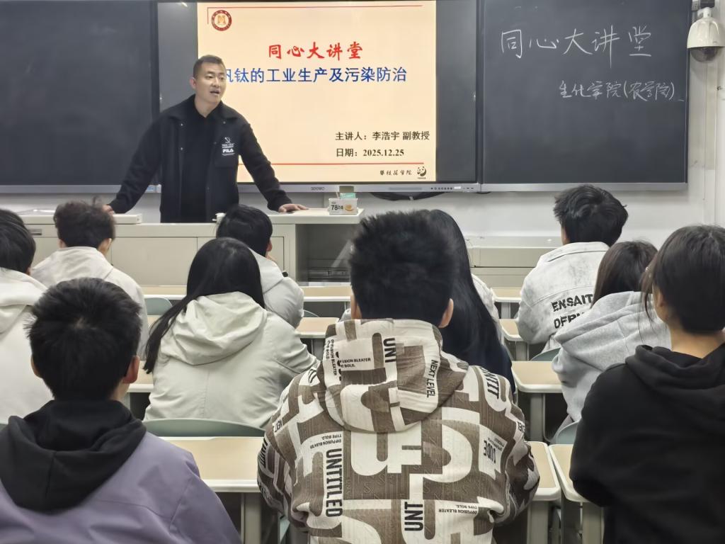 为深入贯彻落实统战工作要求,充分发挥民主党派人才智力优势,搭建 “同心向党、服务育人” 的交流平台,12 月 25 日下午,生化公司(农公司)在第一教学楼成功举办 “同心大讲堂”专题讲座。公司九三学社社委、副教授、博士李浩宇受邀担任主讲人,以 “钒钛的工业生产及污染防治” 为题,为师生带来一场兼具专业性与科普性的学术盛宴,推动统战工作与团队建设、人才培养深度融合。