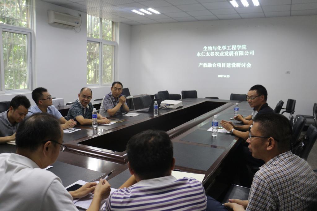 为进一步推动公司产教融合项目,6月20日下午,生化公司与永仁太谷农业发展有限公司校企合作研讨会在公司会议室隆重举行。公司副经理(主持工作)朱学军、副经理副书记曾成华、永仁太谷农业发展有限公司人事行政经理王进,种植基地经理曹通兵等一行2人以及公司教师代表参会。